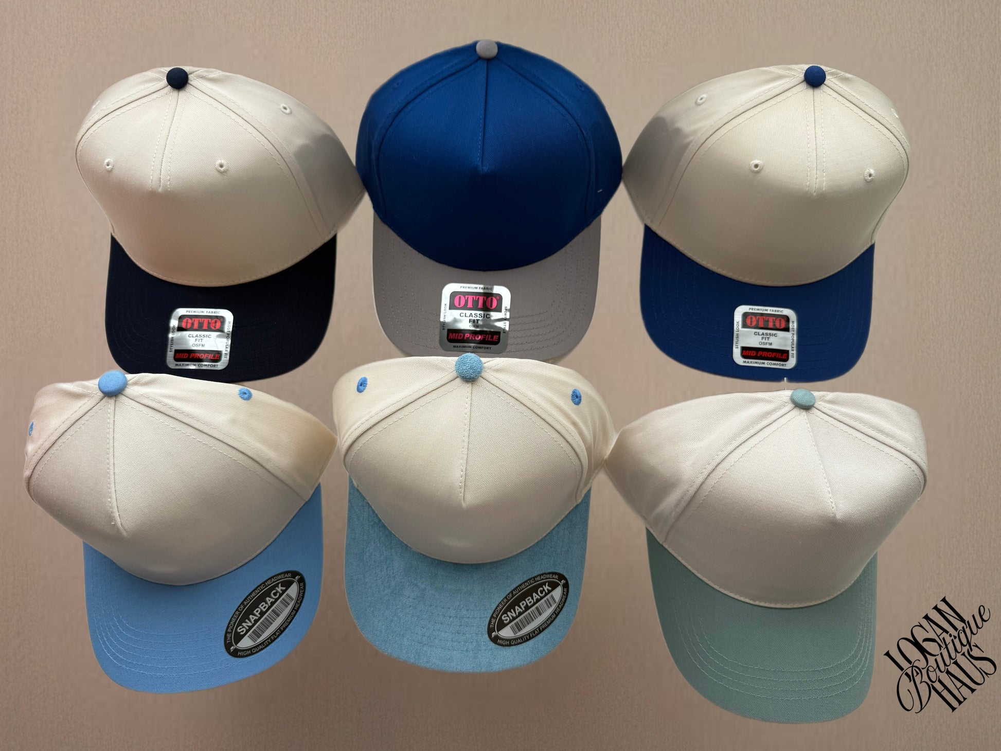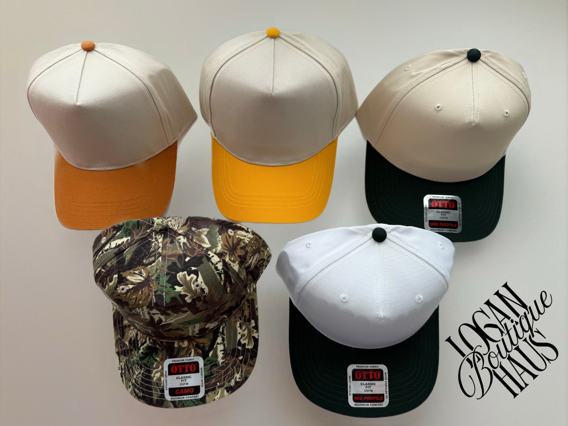 Canyon Lake Mommies Hats are a 5-panel hat with adjustable backing and embroidery detail.
