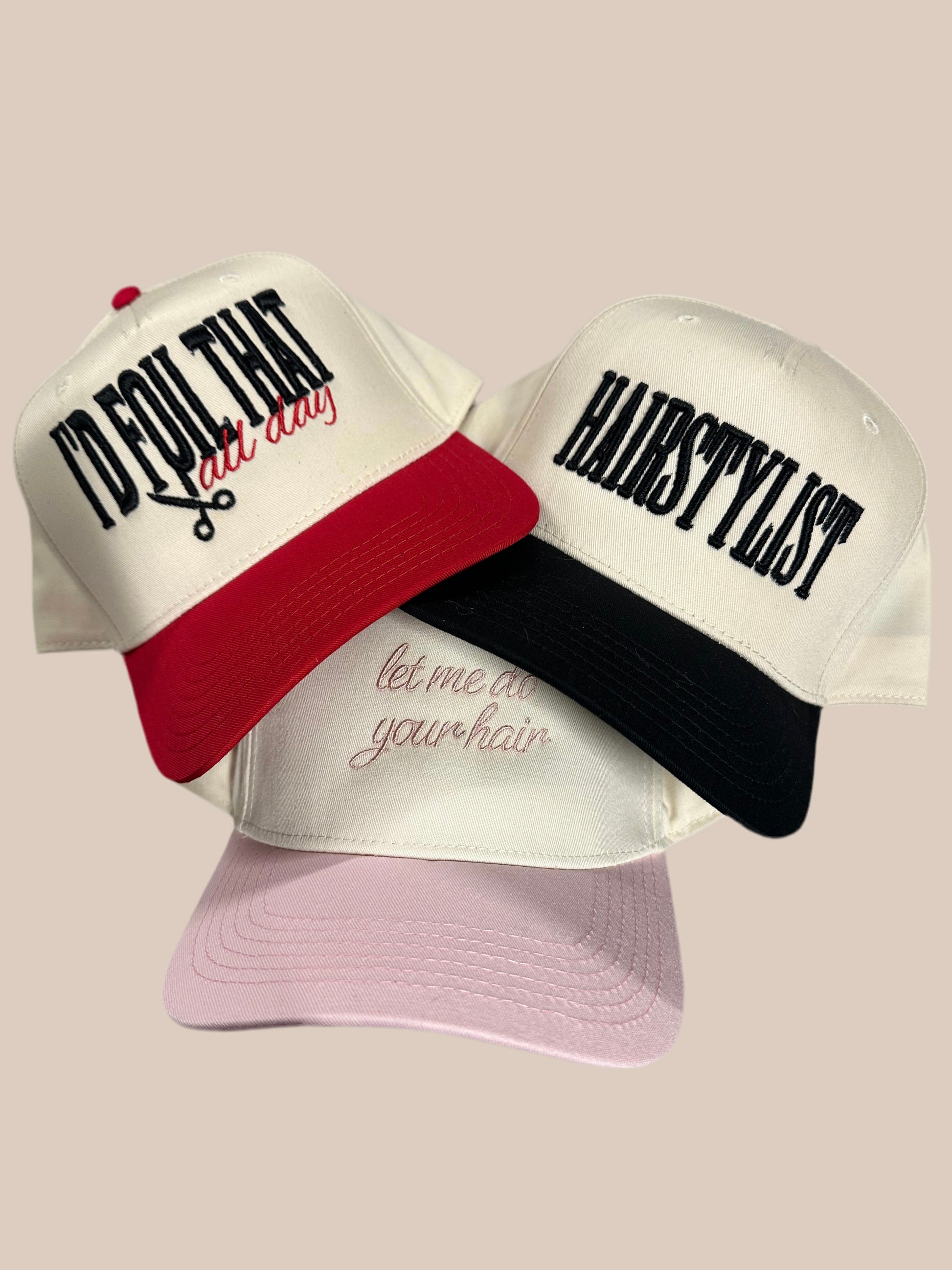 Hair Girly Hats are a 5-panel hat with adjustable backing and embroidery detail.