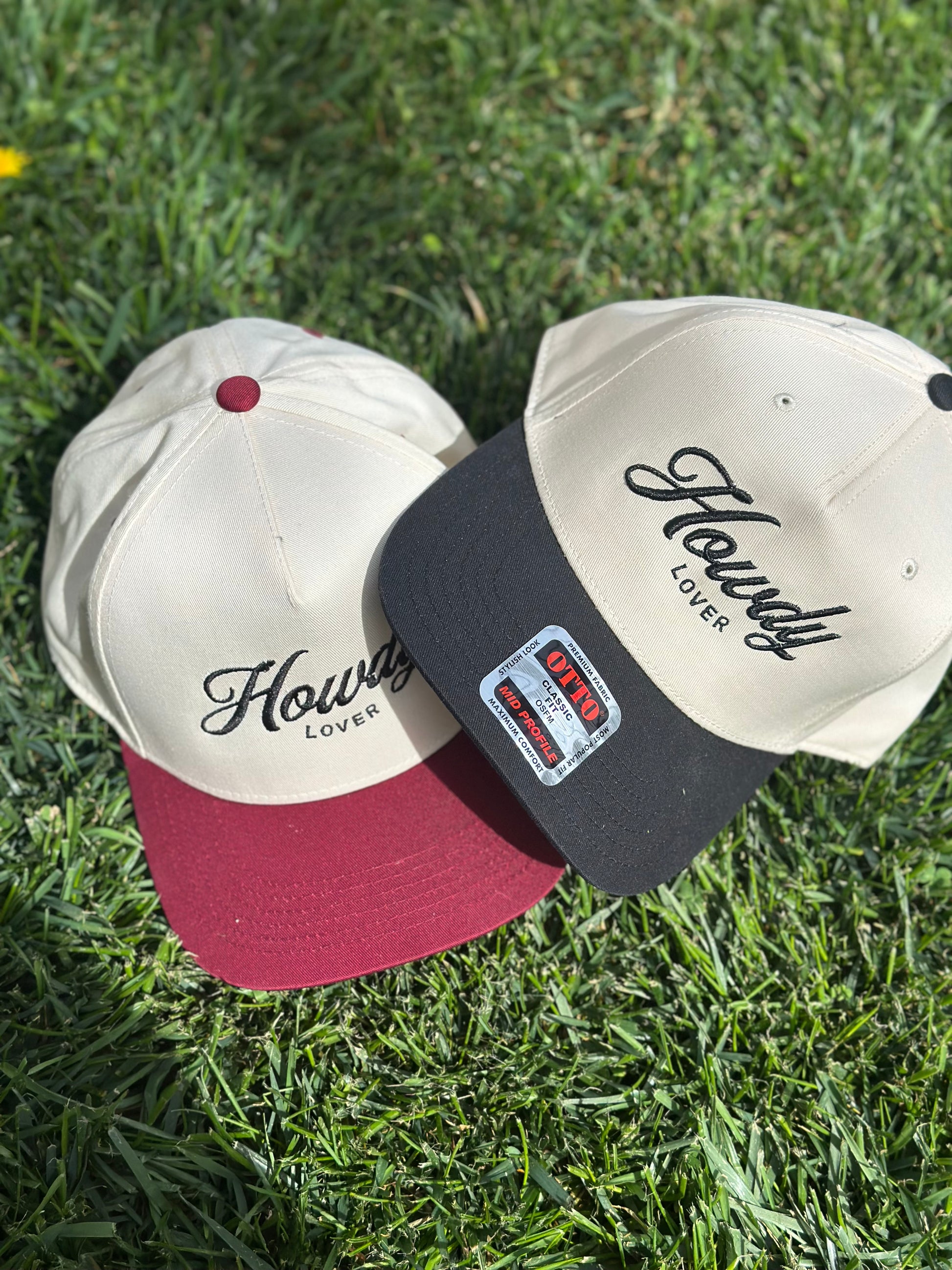 Howdy Lover is a 5-panel hat with adjustable backing and embroidery detail.